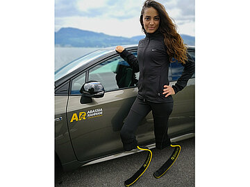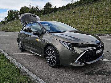 Schnell ans Ziel kommen, gelingt Abassia auch mit ihrem neuen Toyota Corolla Hybrid, den KIRCHHOFF Mobility Schweiz mit der Handbedienung Carospeed und dem Lenkraddrehknopf Ergo ausgestattet hat.