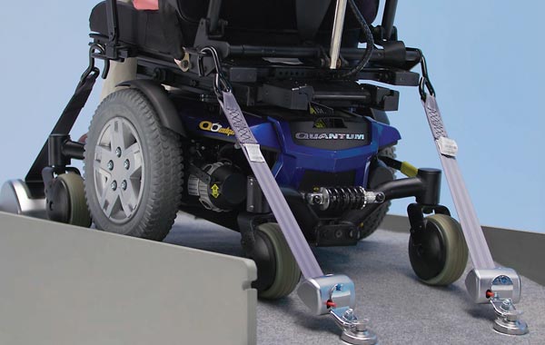 Die ergonomische 360°-Daumensteuerung erleichtert das Manövrieren auf Rampen, während die vorderen Verankerungen den Sicherungsvorgang beschleunigen und die körperliche Belastung deutlich reduzieren. Das System ist vollständig crashgetestet, normgerecht und erfüllt alle relevanten Sicherheitsanforderungen.