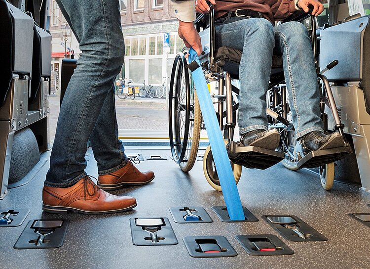 Dank der modularen Bauweise des Bodensystems lassen sich Fahrzeuge individuell konfigurieren. Bis zu 8 Drehklappsitze können flexibel eingesetzt werden, sodass der Transporter sowohl für Gruppenfahrten als auch für Rollstuhlfahrer optimal genutzt werden kann. Bei Bedarf lassen sich die Drehklappsitze während Rollstuhlfahrten schnell und einfach zur Seite klappen.