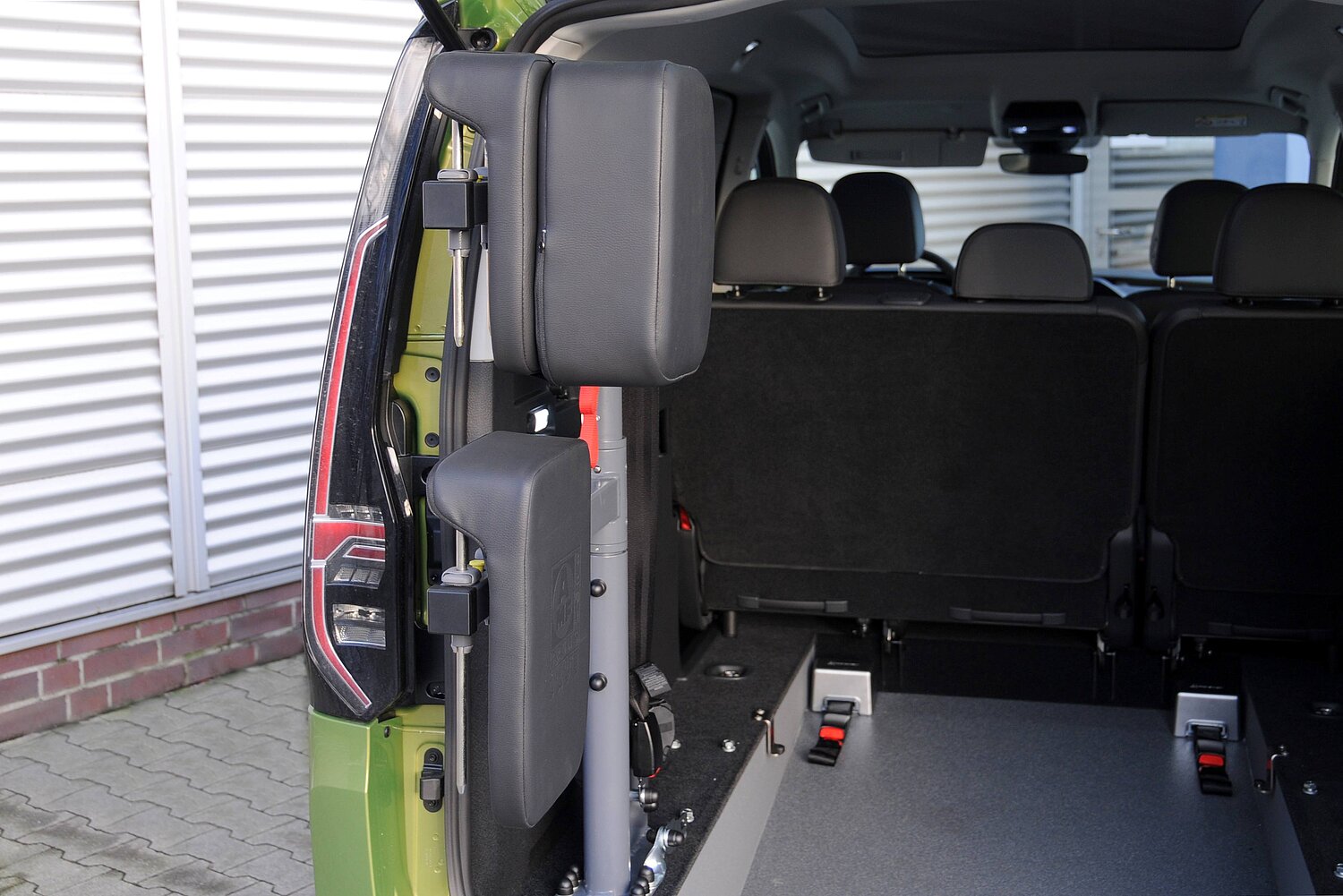 Grâce à son design peu encombrant, l'ensemble peut être facilement pivoté vers la paroi du véhicule lors des trajets sans passager en fauteuil roulant, laissant ainsi l'espace intérieur libre.