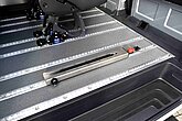 Le plancher modulaire en aluminium est disponible avec 6, 8 ou 10 rails, selon le véhicule et les besoins, et offre la possibilité de choisir entre différents revêtements de sol. Il permet ainsi de couvrir toutes les tailles de véhicules et tous les besoins. Les planchers sont antidérapants, faciles à nettoyer et conçus pour une utilisation quotidienne intensive.