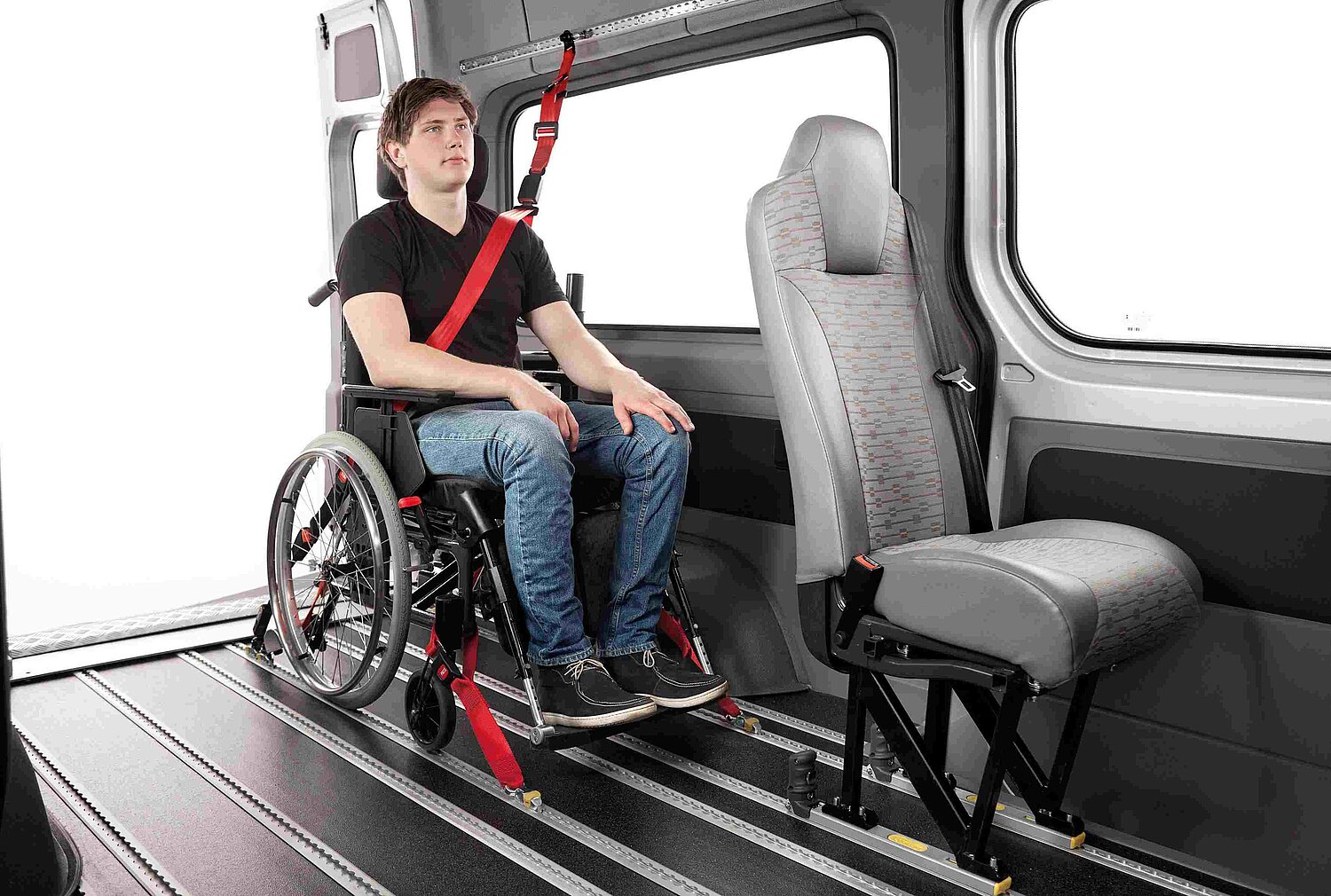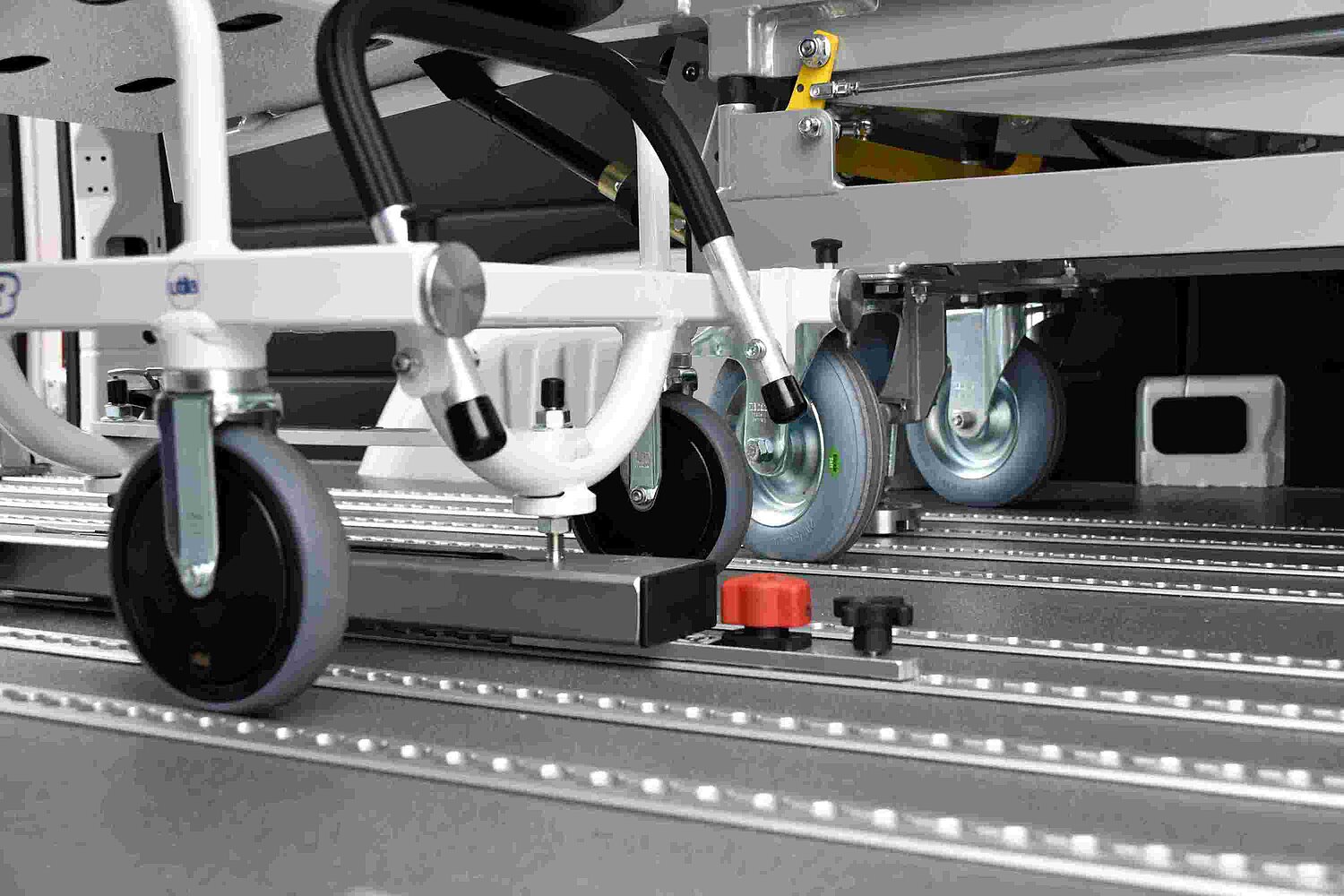 Avec un système de sol en aluminium, vous créez un concept de véhicule sûr, flexible et polyvalent, adaptable à tout moment aux besoins de vos passagers. Grâce à un système d'encliquetage intelligent, les sièges individuels, les fauteuils roulants ou les brancards peuvent être positionnés individuellement et adaptés rapidement à tout moment. Le système modulaire à rails vous permet d'aménager les sièges de votre véhicule de manière flexible. Qu'il s'agisse de déplacer ou de démonter des sièges individuels ou de créer des places supplémentaires pour les fauteuils roulants, vous pouvez adapter votre véhicule de manière optimale à chaque situation de transport en quelques gestes seulement.