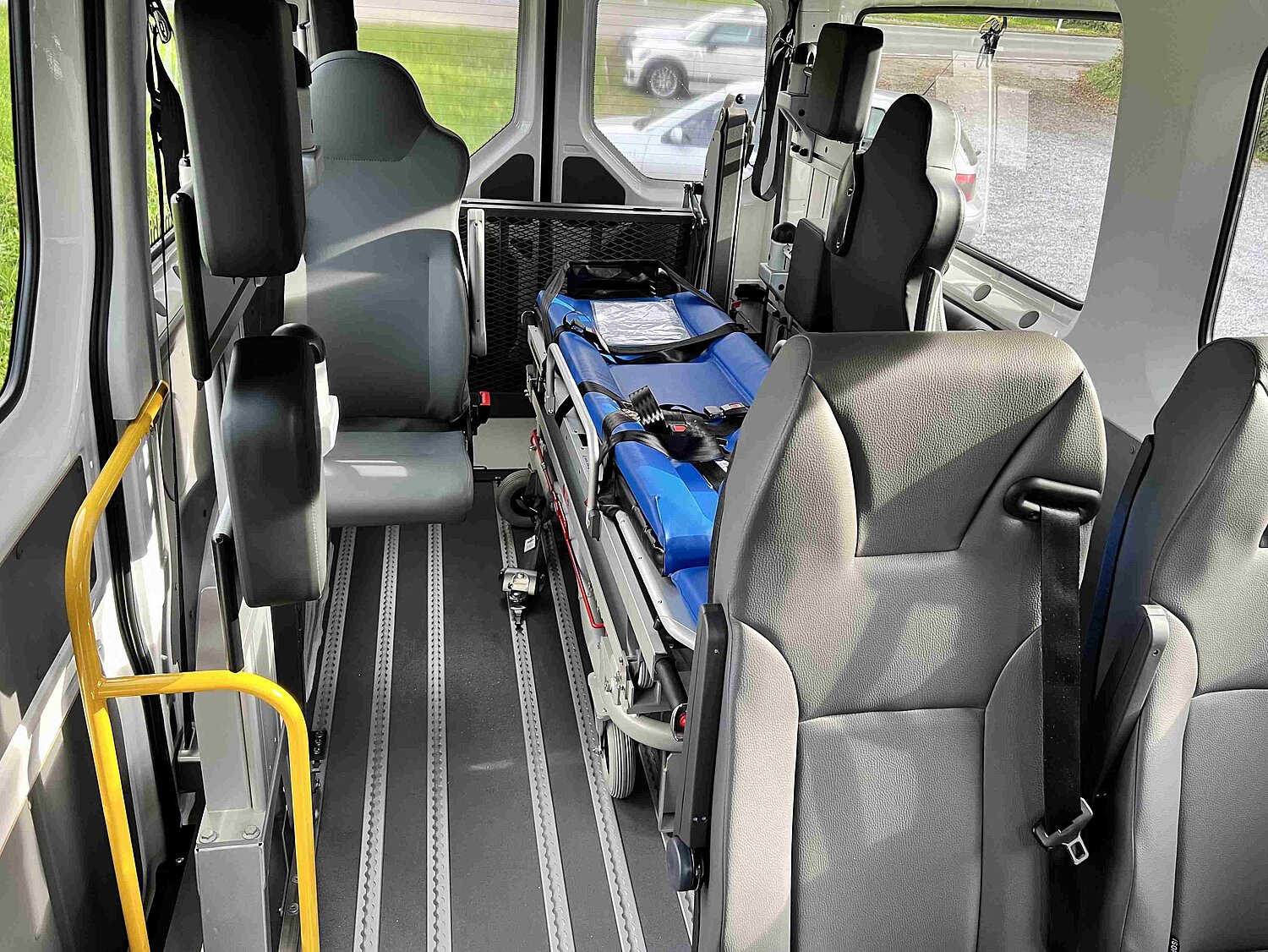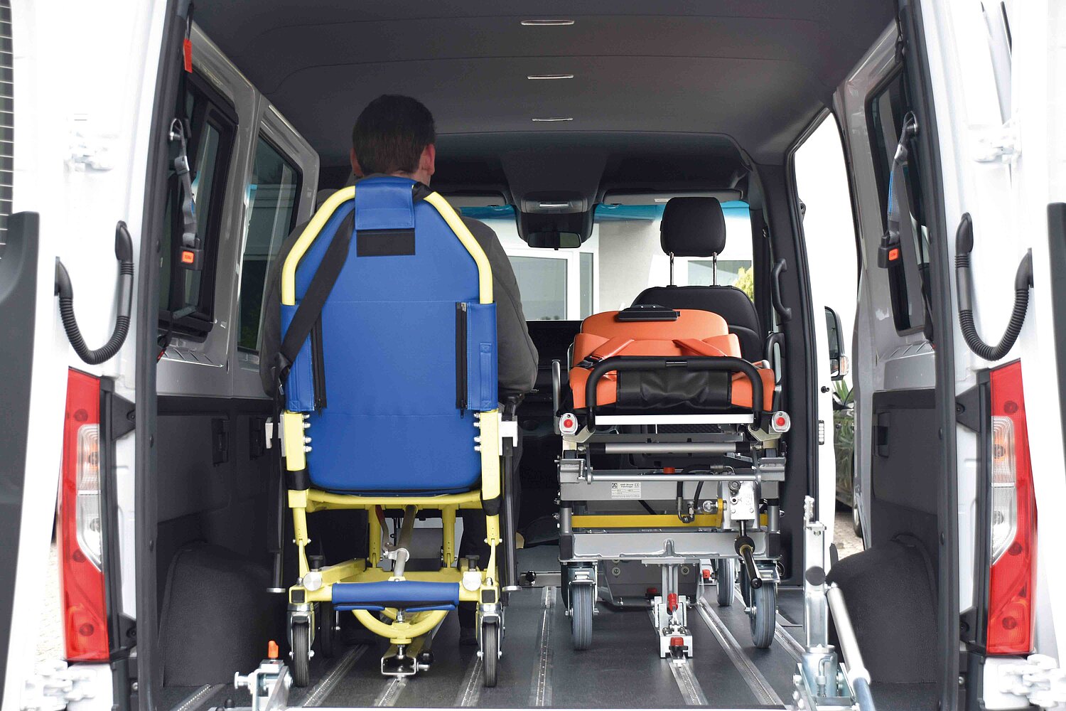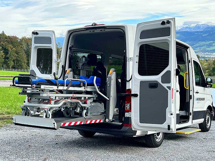 Allestiamo veicoli appositamente per il trasporto di pazienti in posizione distesa, garantendo il massimo comfort e la massima sicurezza. Allo stesso tempo, prestiamo attenzione alla facilità d'uso e allo spazio sufficiente per gli accompagnatori e gli altri passeggeri.