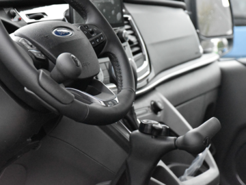 Unser Kunde ist Rollstuhlfahrer und kann über den seitlichen SF-Lift 350 III in seinen Tourneo Custom hineinfahren und den RECARO Fahrersitz über die Bedieneinheit der 6-Wege-Sitzverstellung neben seinem Rollstuhl dirigieren. So kann er sich einfach und komfortabel umsetzen.