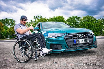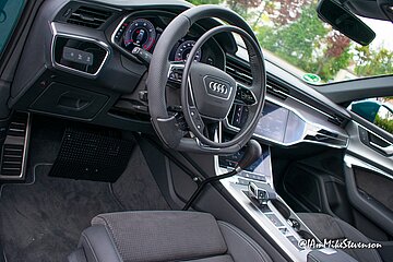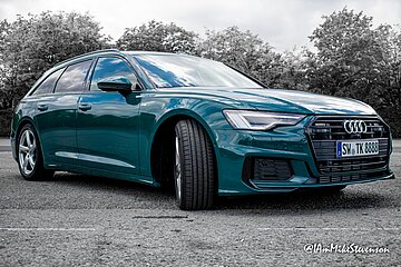 Dieser grüne Audi A6 Avant Quattro Hybrid wurde vor Kurzem von KIRCHHOFF Mobility Kronau mit der KIRCHHOFF Mobility Handbedienung für Bremse und dem abnehmbaren elektrischen Gasring von KIVI ausgestattet.