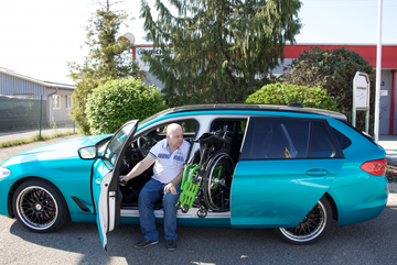 Für diesen Sonderumbau wurde der RolliFix II in seiner Konstruktion baulich verändert. Die Gesamthöhe des Verladesystems wurde reduziert und damit passend für den BMW 5er gemacht, ohne dabei die Funktionalität des Systems einzuschränken. Michael Gaebel sagt nicht ohne Stolz: „Das dieser Umbau gelungen ist, bestätigt einmal mehr unsere Kompetenz als einer der führenden Fahrzeugumrüster für mobilitätseingeschränkte Personen. Aber vor allem freuen wir uns am Ende über einen glücklichen Kunden.“