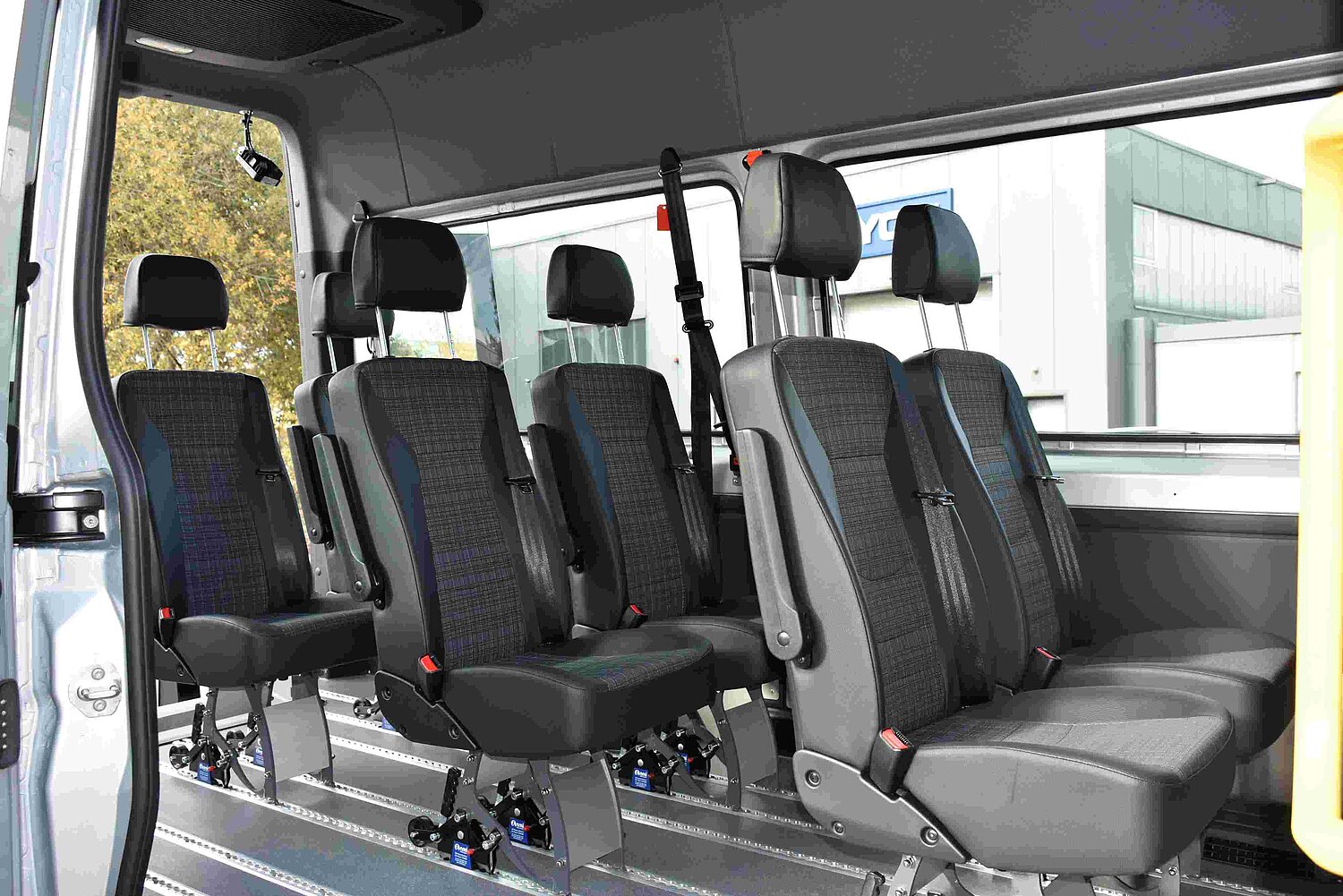 Unsere Sitzlösungen bieten maximale Flexibilität für den Fahrgastraum. Wählen Sie zwischen fest montierten Sitzen, herausnehmbaren Einzelsitzen und Drehklappsitzen – passend zu Ihren Anforderungen.