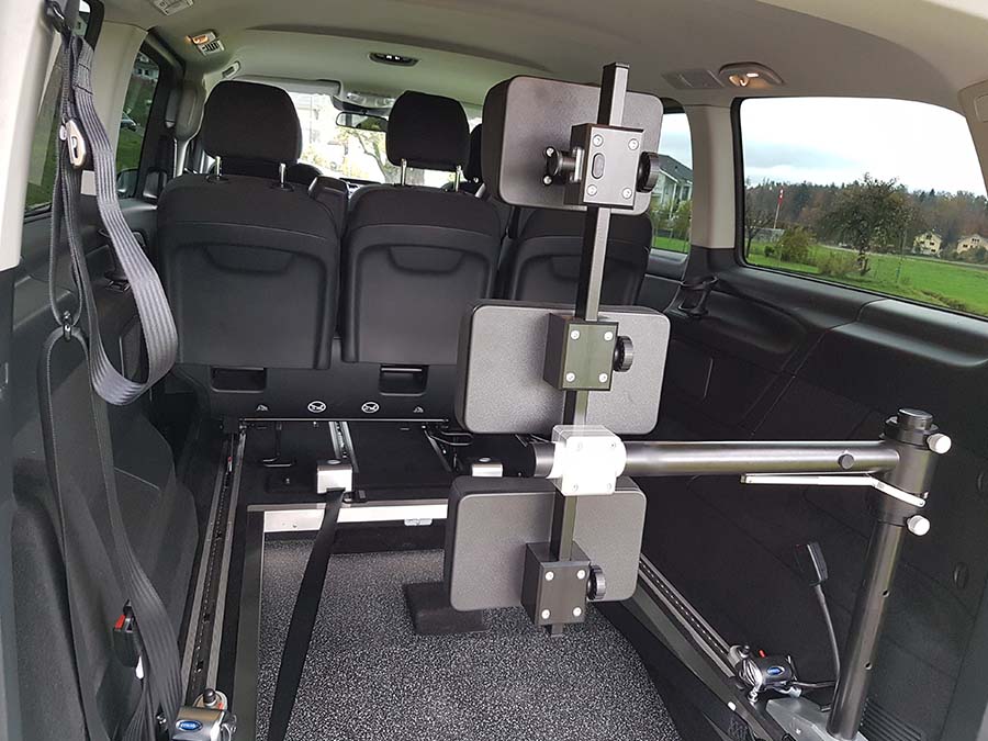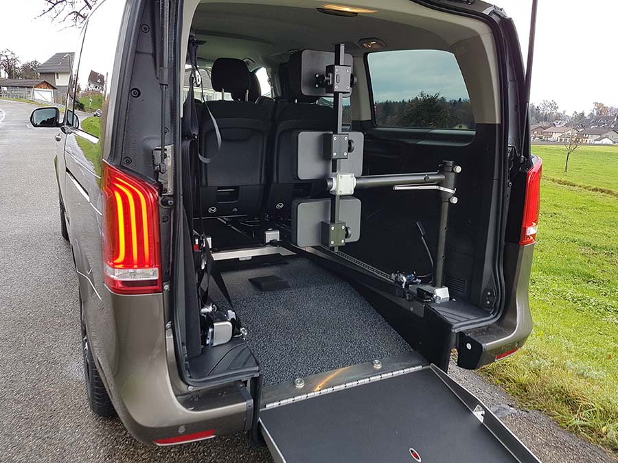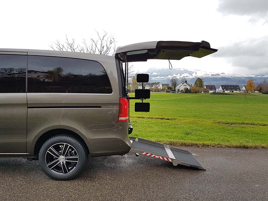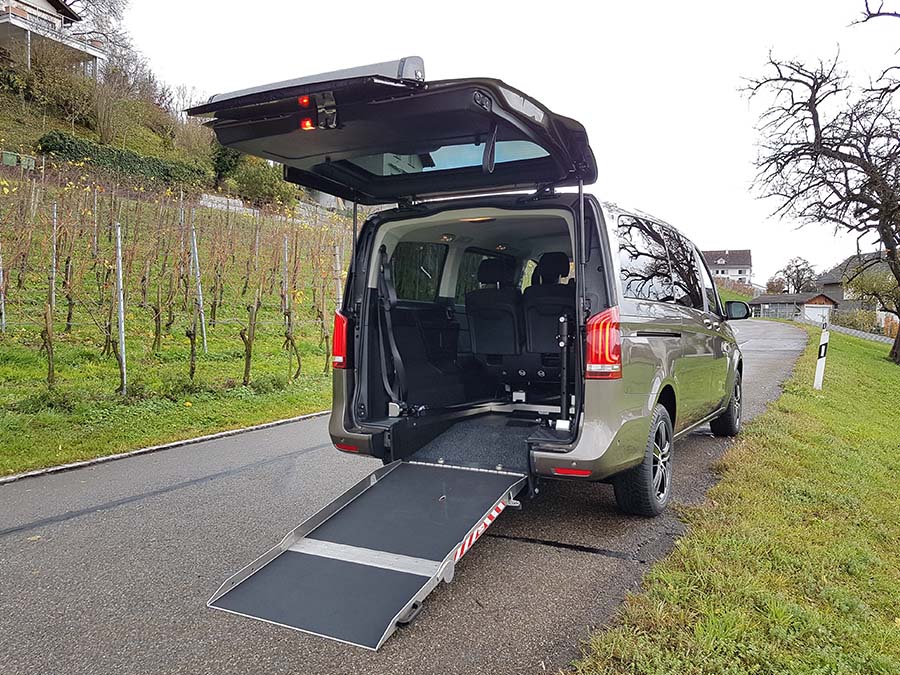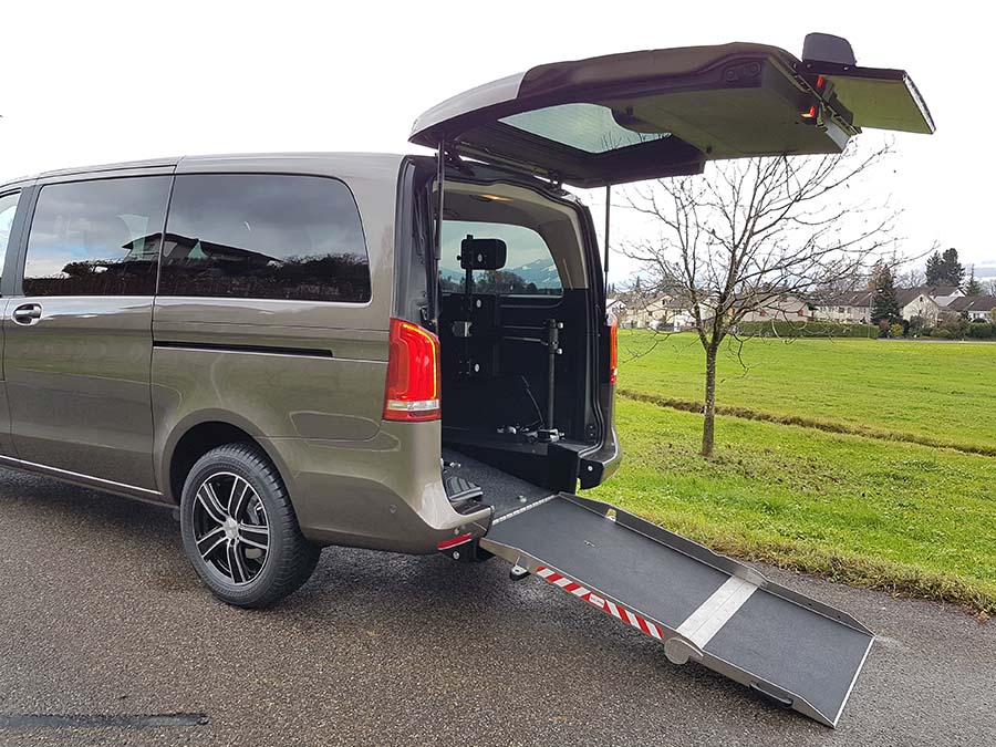 KIRCHHOFF Mobility AG hat zwei Mercedes-Benz V-Klasse Allradfahrzeuge behindertengerecht umgebaut. Beide Fahrzeuge verfügen über einen NIVO Heckausschnitt und eine zweiteilige (faltbare) Rampe die eine freie Sicht nach hinter ermöglicht. Standardgemäß wird die V-Klasse mit einem rutschhemmenden und pflegeleichten PVC-Belag ausgelegt. Optional kann auch ein Bodenbelag aus Teppich gewählt werden.